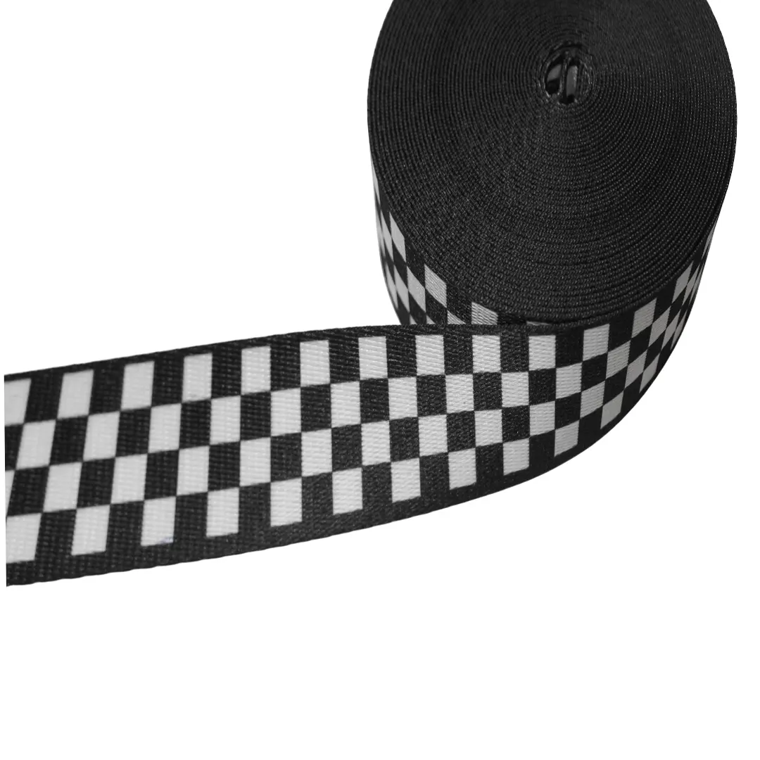 Πολυεστερικός ιμάντας υψηλής αντοχής με ιδιαίτερο ασπρόμαυρο σχέδιο σκακιέρας, ιδανικός για χειροποίητες τσάντες, σακίδια, τσάντες ώμου, χιαστί και banana μέσης.