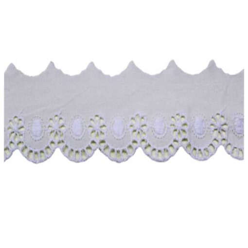 Δαντέλα υφασμάτινη 100% βαμβακερη κεντημένη ασπροκέντημα εξαιρετικής ποιότητας, σε λευκό χρώμα.
