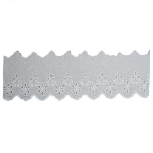Δαντέλα υφασμάτινη 100% βαμβακερη κεντημένη ασπροκέντημα εξαιρετικής ποιότητας, σε λευκό χρώμα.