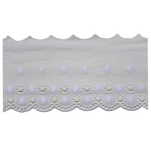 Δαντέλα υφασμάτινη 100% βαμβακερη κεντημένη ασπροκέντημα εξαιρετικής ποιότητας, σε λευκό χρώμα.