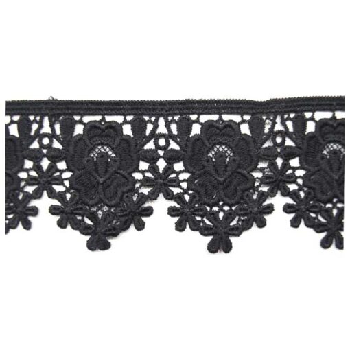 Δαντέλα 100% βαμβακερη, υψηλής ποιότητας, κατάλληλη για εντυπωσιακές εμφανίσεις, κομψή, αριστοκρατική και φινετσάτη, σε μαύρο χρώμα.
