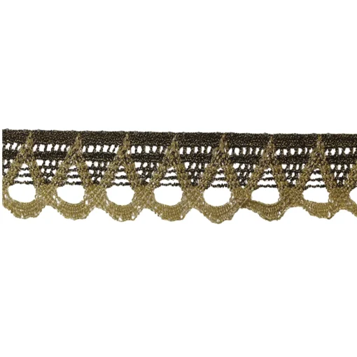 Δαντέλα λασέ κεντημένη με χρυσοκλωστή σε χρυσό με μπρονζέ, με επαναλαμβανόμενο σχέδιο γεωμετρικά ημικυκλίων. Τοποθετείται σε τελειώματα κεντημάτων τραπεζομάντηλων, τραβερσών και εκκλησιαστικών ειδών.
