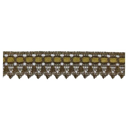 Αναδείξτε τις δημιουργίες σας με αυτήν την κομψή και εκλεπτυσμένη δαντέλα, κατασκευασμένη από υλικά υψηλής ποιότητας χωρίς νάιλον. Η προσθήκη χρυσοκλωστής χαρίζει μία πολυτελή αίσθηση, καθιστώντας τη ιδανική για κεντήματα, ιερατικά και διακοσμητικά υφάσματα.
