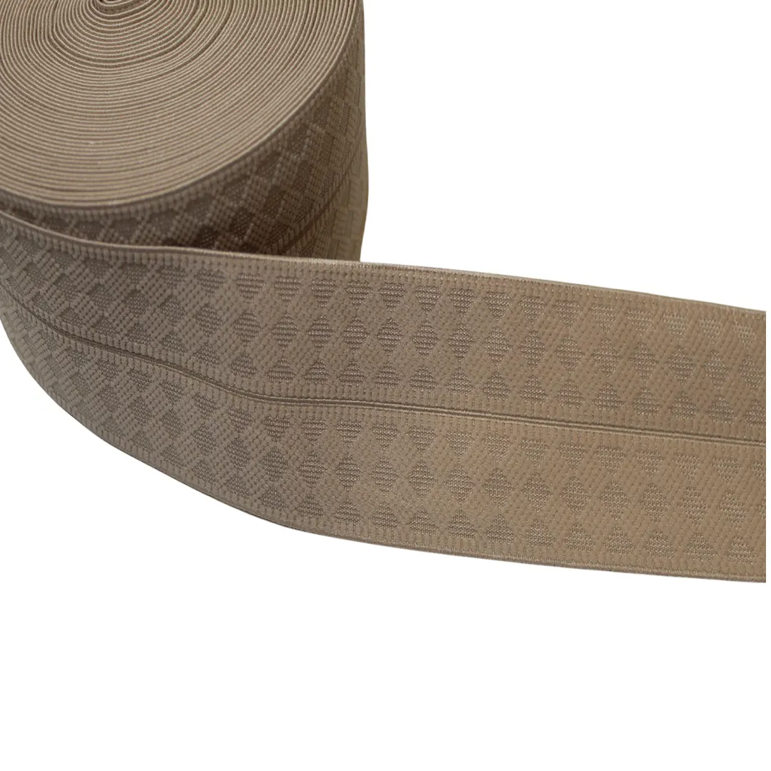 Διακοσμητικό λάστιχο μέσης με ανάγλυφο γεωμετρικό σχέδιο, ιδανικό για εξωτερικό ράψιμο σε φούστες, φορέματα, παντελόνια και άλλα ενδύματα.