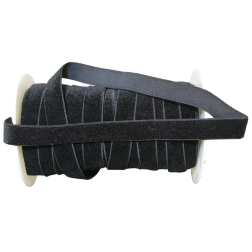 Ελαστική κορδέλα βελούδο σε μαύρο χρώμα, διαθέσιμη σε φάρδος 15mm και 20mm. Ιδανική για ρούχα, διακοσμητικές λεπτομέρειες, μαλλιά ή χειροποίητες δημιουργίες με πολυτελή υφή.