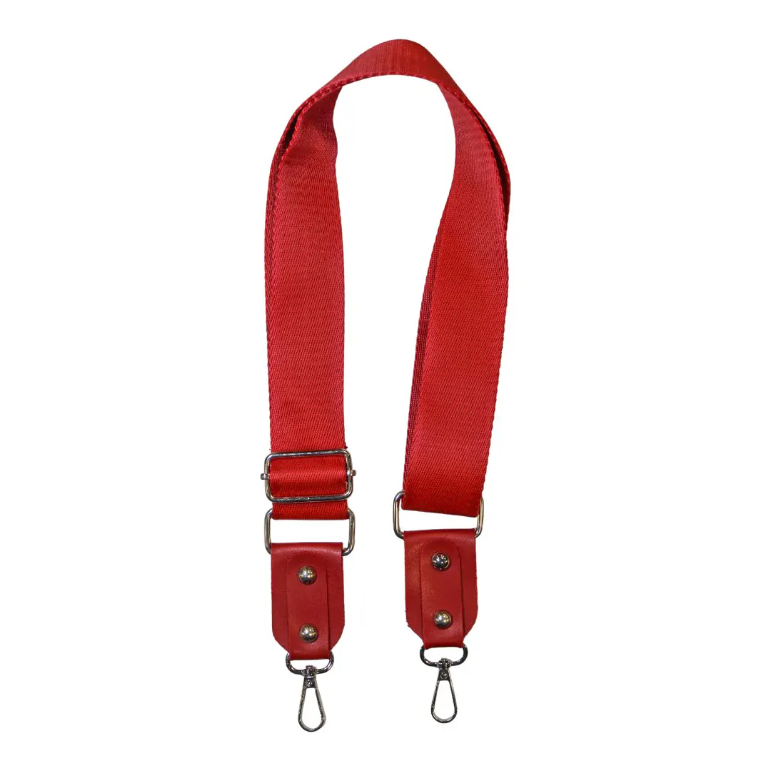 Ρυθμιζόμενος πολυεστερικός ιμάντας τσάντας με διακοσμητικό τελείωμα από δερματίνη, ασημί τρουκς και γαντζάκια, ιδανικός για άνετη εφαρμογή και κομψή εμφάνιση της τσάντας.