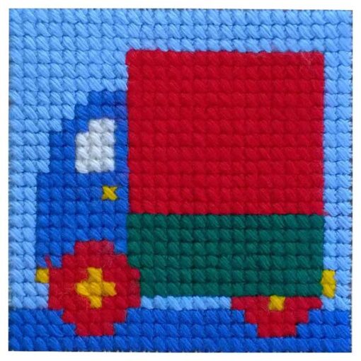 Για τα παιδιά που λατρεύουν τα οχήματα, το σταμπωτό σχέδιο με το φορτηγό είναι η τέλεια ευκαιρία να μπουν στον κόσμο του κεντήματος με ενθουσιασμό. Το μεγάλο κόκκινο φορτίο, οι ζωηρές ρόδες και το έντονο μπλε του ουρανού δημιουργούν μια χαρούμενη και δυναμική εικόνα.