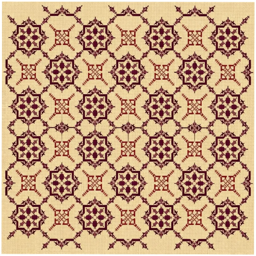 Κέντημα Σταμπωτό Καρέ με Επαναλαμβανόμενα Γεωμετρικά Μοτίβα