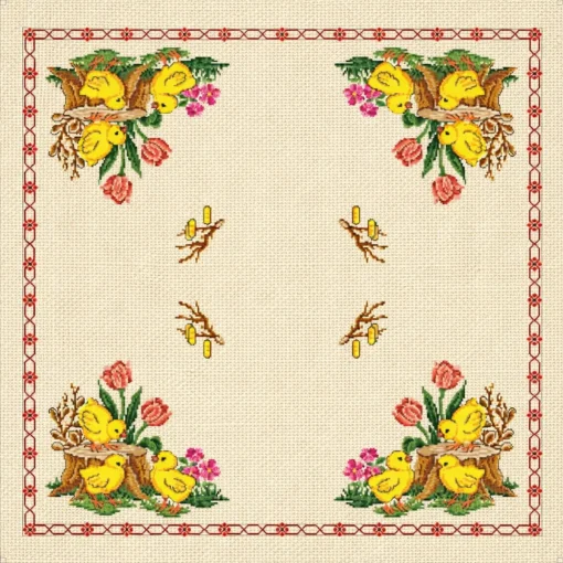 Κέντημα Σταμπωτό Καρέ τα Κοτοπουλάκια στα Ανοιξιάτικα Λουλούδια