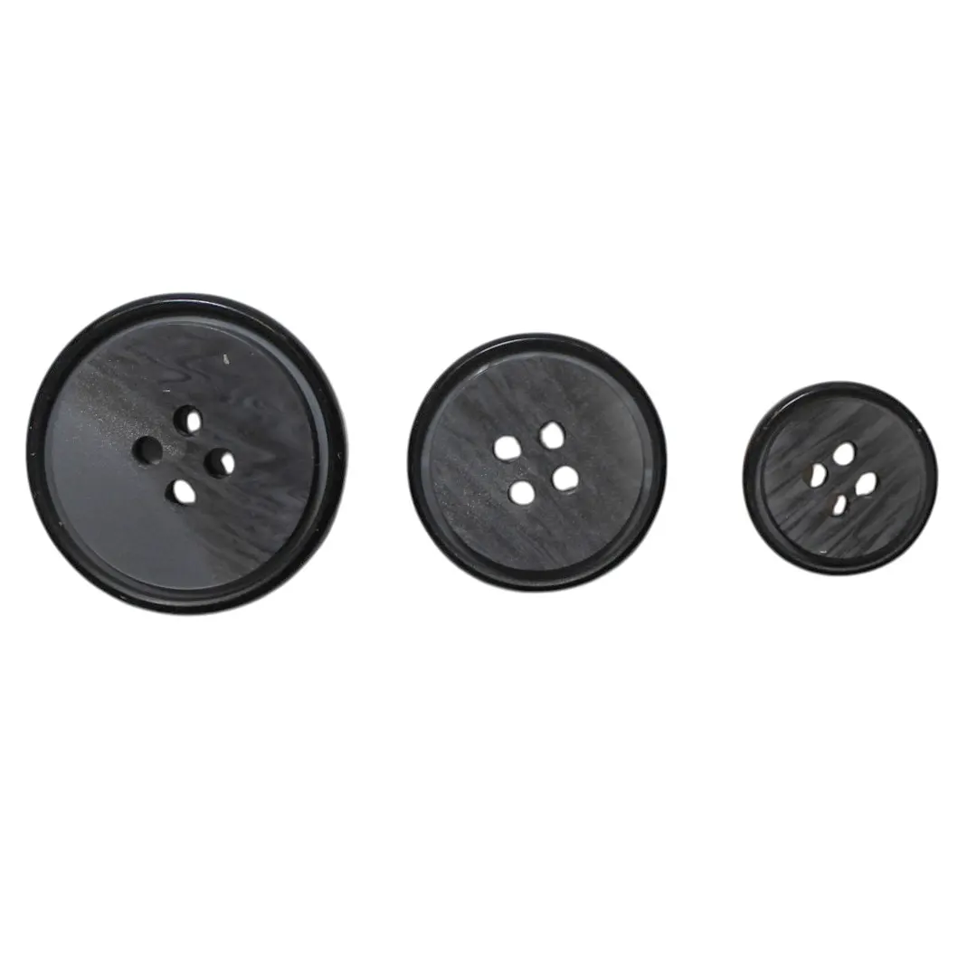 Κλασικό ανδρικό κουμπί σε σκούρο γκρι χρώμα με 4 τρύπες, ιδανικό για σακάκια, παλτό, ζακέτες και πανωφόρια. Διαχρονική επιλογή για κομψό αποτέλεσμα.
