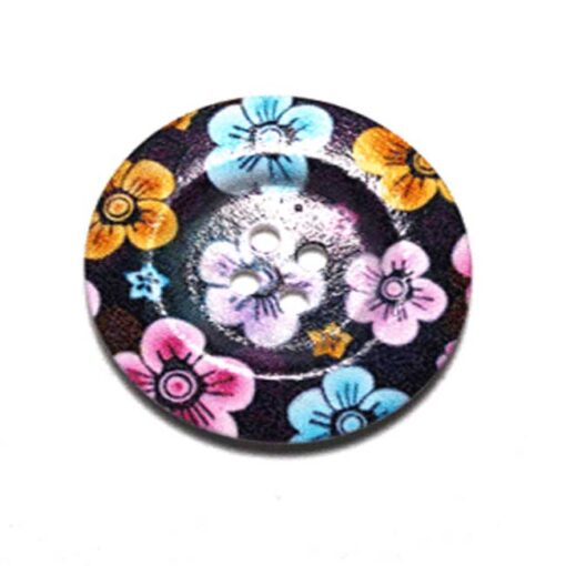 Κουμπί Ξύλινο Μαύρο με Λουλούδια 4cm