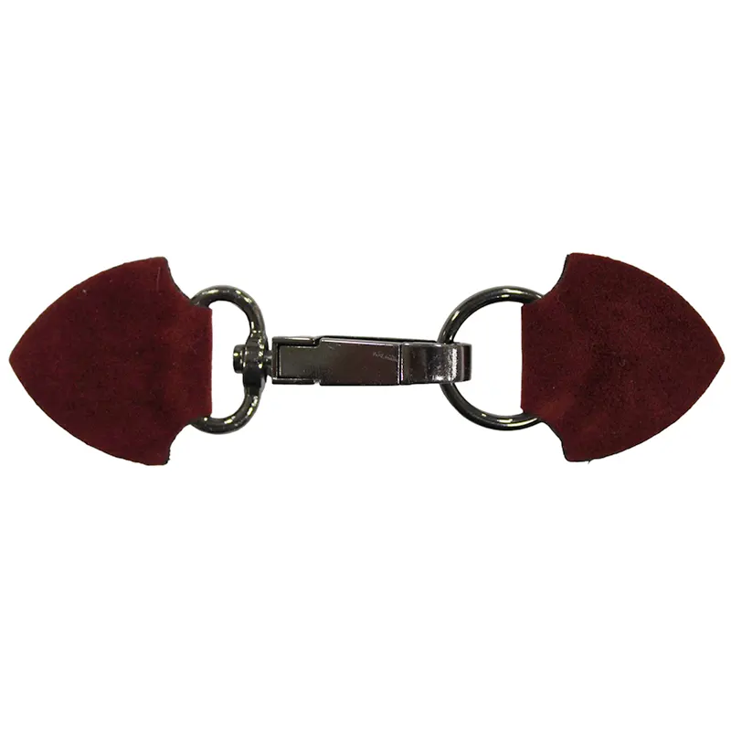Κουμπί μοντγκόμερι απο σουέτ δέρμα με μεταλλικό γαντζάκι σε φιμέ χρώμα.