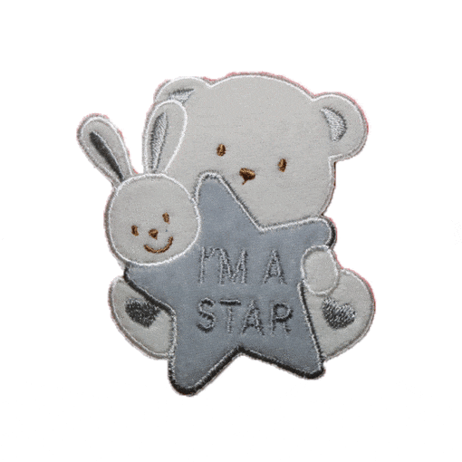 Μοτίφ στάμπα για μωρουδιακά I’m a Star, βάλτε τη στάμπα με την πλευρά που έχει την κόλλα προς τα κάτω στο σημείο που θα κολληθεί. Τοποθετείστε ένα λεπτό και στεγνό πανί πάνω στο μοτίφ και πιέστε με το σίδερο σε υψηλή θερμοκρασία για 20-30 δευτερόλεπτα.