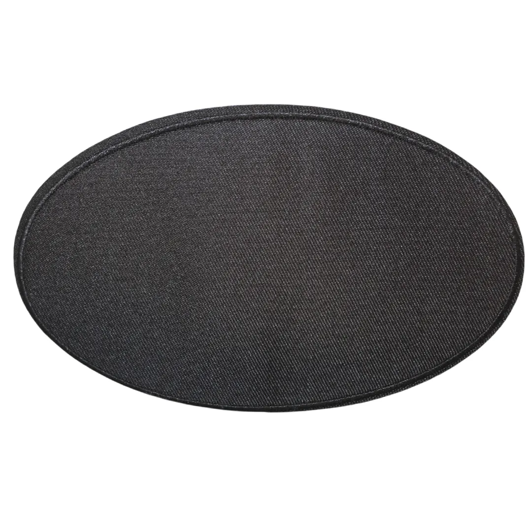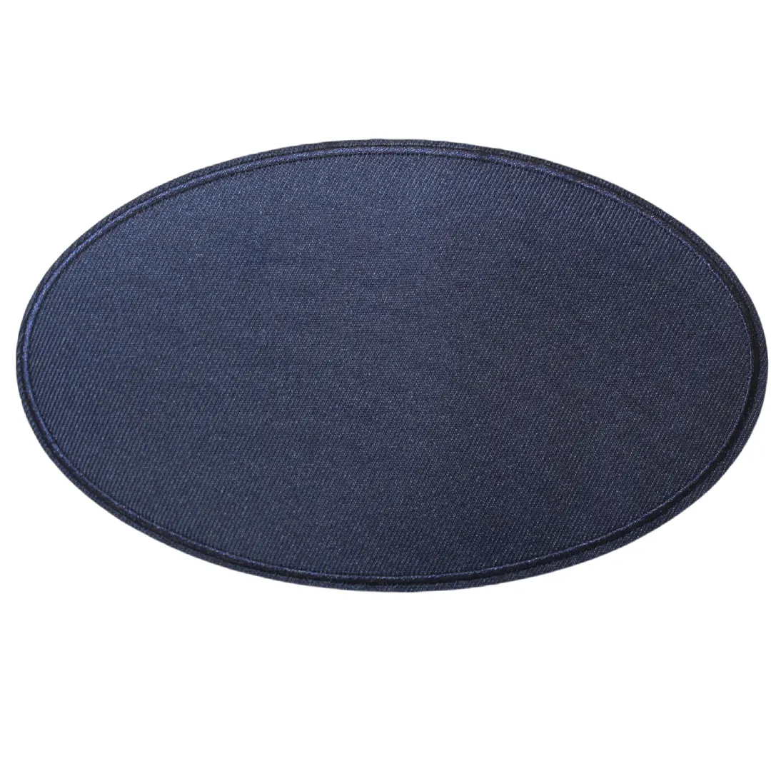 Οβάλ θερμοκολλητική στάμπα για μπαλώματα, διαθέσιμη σε μπλε και μαύρο χρώμα, ιδανική για επιδιόρθωση σκισιμάτων, φθορών και σημείων που χρειάζονται ενίσχυση σε ρούχα ή αξεσουάρ.