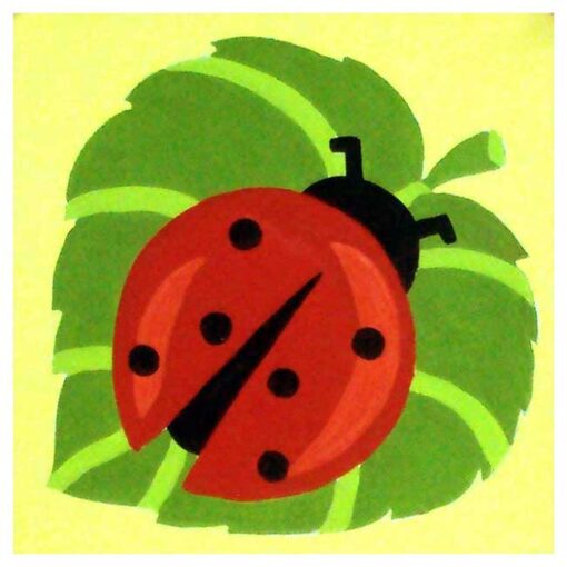 Μια παιχνιδιάρικη πασχαλίτσα ακουμπά πάνω σε καταπράσινο φύλλο, σε ένα από τα πιο γλυκά σταμπωτά παιδικά καδράκια για κέντημα. Ο καμβάς Νο7 με ευδιάκριτες τρύπες κάνει το κέντημα απολαυστικό και ξεκούραστο, ειδικά για μικρά χεράκια ή αρχάριους.