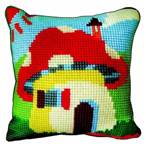 Καλώς ήρθατε στη χώρα των παραμυθιών. Αυτό το σταμπωτό μαξιλάρι για κέντημα, ιδανικό για παιδιά, απεικονίζει ένα μαγικό σπιτάκι μανιτάρι κάτω από τον ήλιο, μέσα σε ένα καταπράσινο τοπίο. Το κιτ περιλαμβάνει όλα όσα χρειάζονται οι μικροί δημιουργοί για να ξεκινήσουν αμέσως, με τυπωμένο καμβά σμύρνα με χοντρή τρύπα που κάνει την κάθε βελονιά παιχνιδάκι.