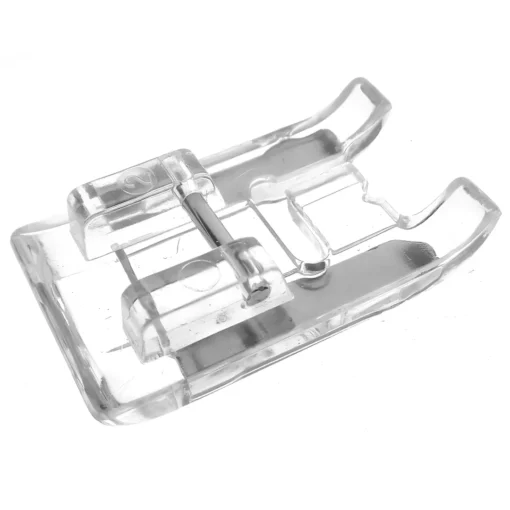 Διάφανο ποδαράκι οικιακής ραπτομηχανής για πυκνή ζιγκ ζαγκ και διακοσμητική βελονιά. Εξασφαλίζει ομαλή κίνηση του υφάσματος και καθαρό αποτέλεσμα.
