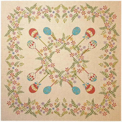 Σταμπαριστό Πασχαλινό Καρέ με Σχέδιο Αυγών σε Στεφάνι Λουλουδιών