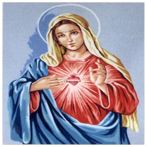 Το σταμπωτό κέντημα Η Παναγία παρουσιάζει τη Θεοτόκο με την Ακάνθινο Καρδία, αποτυπώνοντας την αγάπη και τη θυσία της με μοναδική λεπτομέρεια. Το σχέδιο είναι τυπωμένο σε καμβά Νο7 και κεντιέται με σταυροβελονιά ή κομπλέν, χρησιμοποιώντας DMC mouline σε τρίκλωνες κλωστές για πλήρη κάλυψη και υπέροχο χρωματικό αποτέλεσμα. Ιδανική επιλογή για όσους αγαπούν τα κεντήματα με θρησκευτική σημασία, καθώς συνδυάζει παράδοση και πνευματικότητα σε ένα ξεχωριστό κέντημα για κάθε σπίτι.