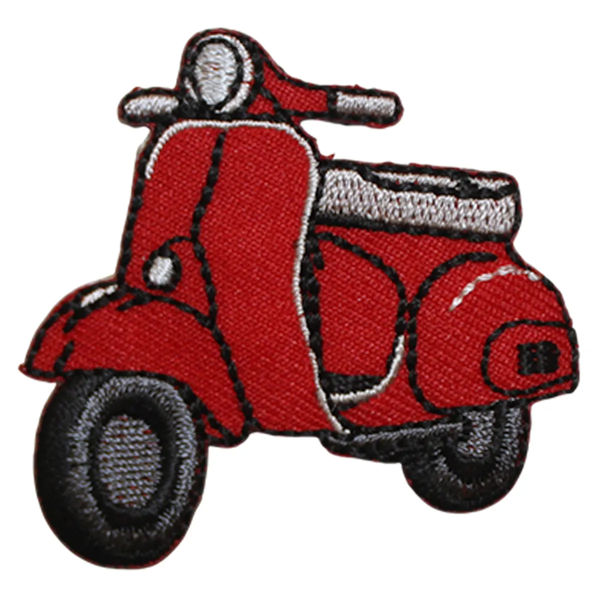 Οι θερμοκολλητικές στάμπες βέσπα σε χρώματα γκρι, μπλε, κίτρινο και κόκκινο χρώμα προσφέρουν μια πρακτική και δημιουργική λύση για επισκευή και διακόσμηση ρούχων.