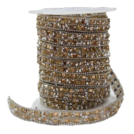 Θερμοκολλητική Κορδέλα με Χρυσό και Ασημί Στρας