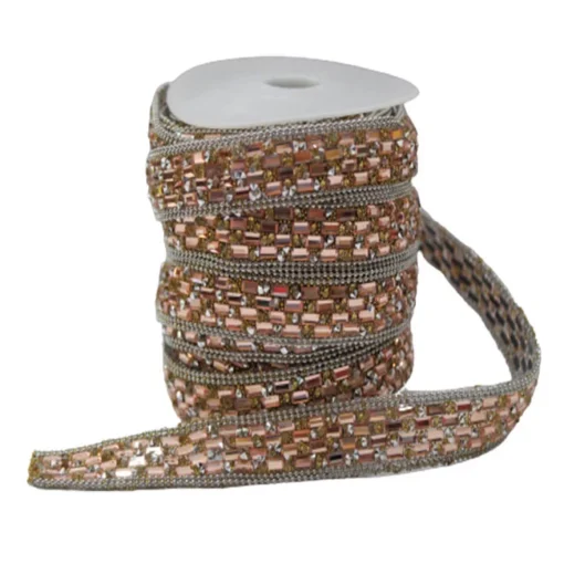 Θερμοκολλητική Κορδέλα με Ροζ Χρυσά Στρας