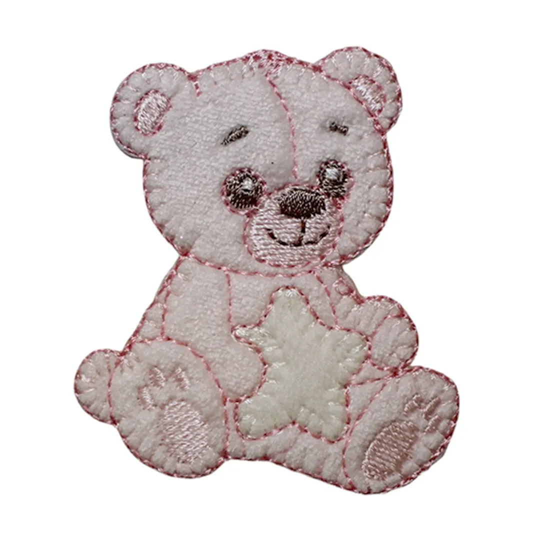 Θερμοκολλητικό διακοσμητικό μοτίφ με το χαριτωμένο αρκουδάκι, σε απαλούς τόνους ροζ, γαλάζιου και μπεζ, ιδανικό για τη διακόσμηση βρεφικής προίκας και παιδικών δημιουργιών.