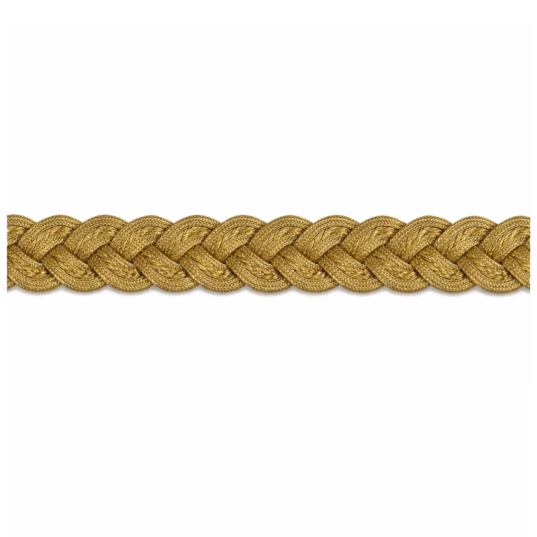 Εντυπωσιακή τρέσα πλεξούδα σε φιμέ και χρυσό χρώμα πλεγμένη με μεταλλική κλωστή που χαρίζει λάμψη και πολυτελές αποτέλεσμα.