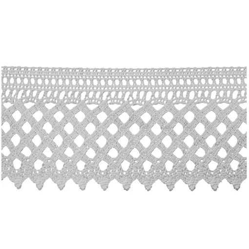Αυτή η παραδοσιακή βαμβακερή δαντέλα κοπανέλι με το εντυπωσιακό διάτρητο σχέδιο ρόμβων και πυκνή πλέξη στο επάνω μέρος για ευκολία στο ράψιμο.