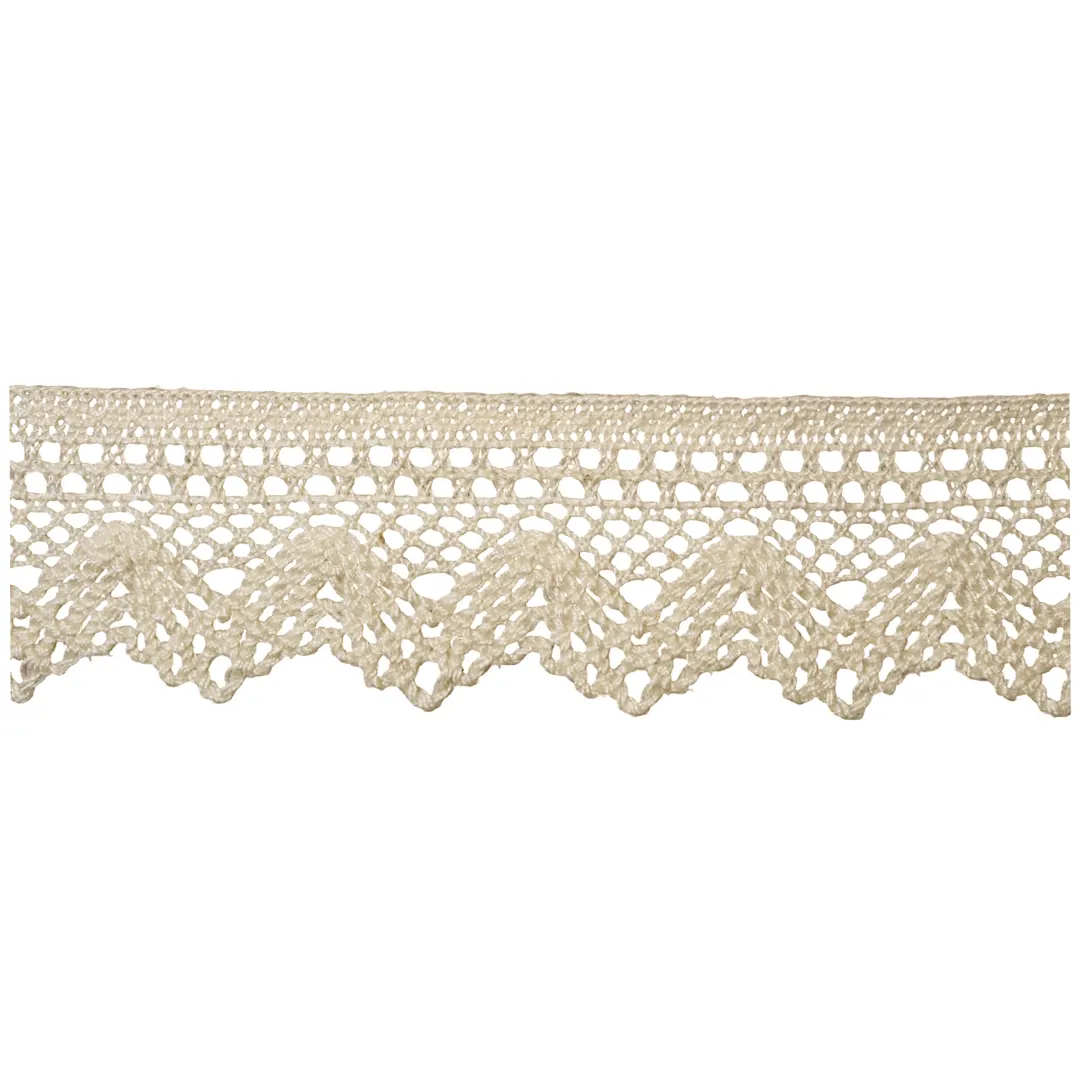 Παραδοσιακή βαμβακερή δαντέλα κοπανέλι σε εκρού χρώμα και διάτρητο σχέδιο με τελείωμα σε μοτίβο βεντάλιας. Κατάλληλη για παραδοσιακές φορεσιές, ποδιές και λευκά είδη με αυθεντικό λαϊκό χαρακτήρα.