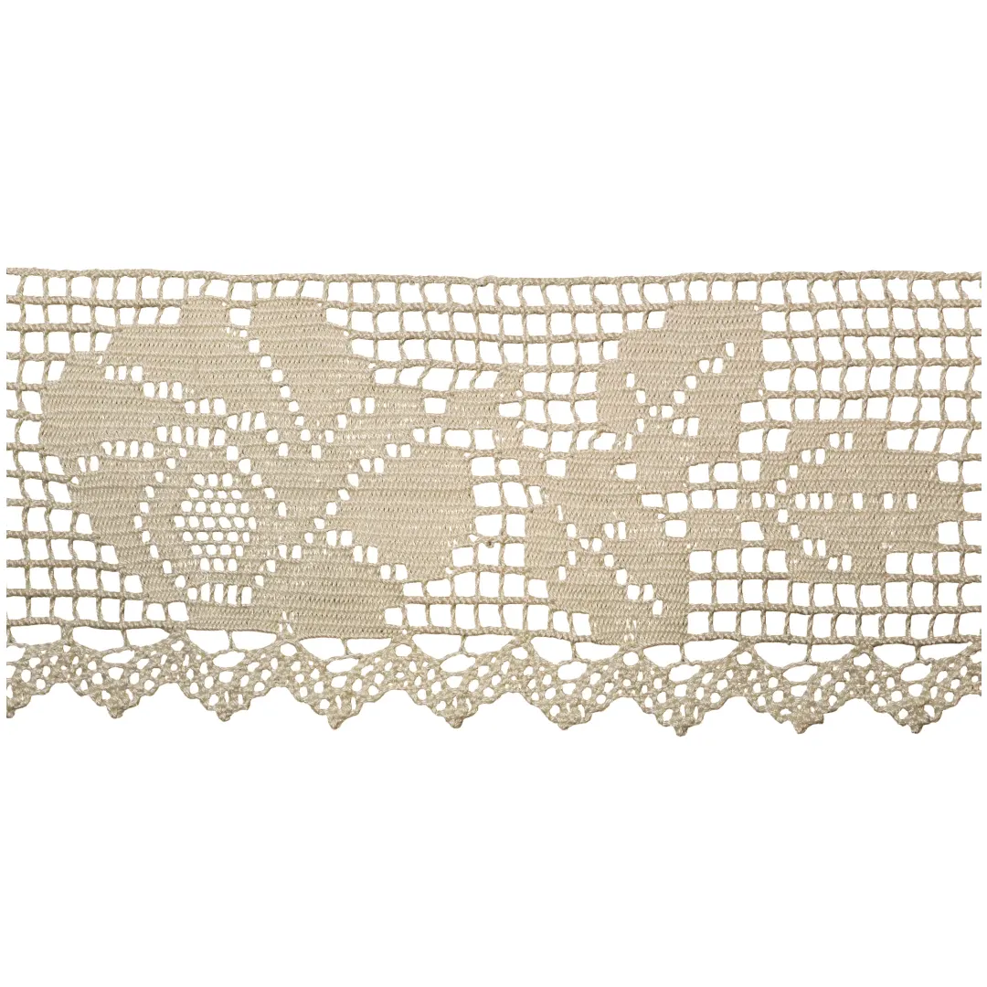 Παραδοσιακή βαμβακερή δαντέλα κοπανέλι φιλέ με μεγάλο σχέδιο λουλουδιού σε εκρού χρώμα. Διατίθεται και με ατραντέ για συνδυασμό, χωρίς να είναι απαραίτητη η κοινή αγορά.
