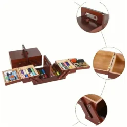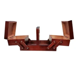 Κατασκευασμένο από ποιοτικό φυσικό ξύλο, διαθέτει πτυσσόμενο σύστημα δύο επιπέδων με ευρύχωρους χώρους, ιδανικούς για την τακτοποίηση νημάτων, βελόνων, ψαλιδιών, κουμπιών και αξεσουάρ.